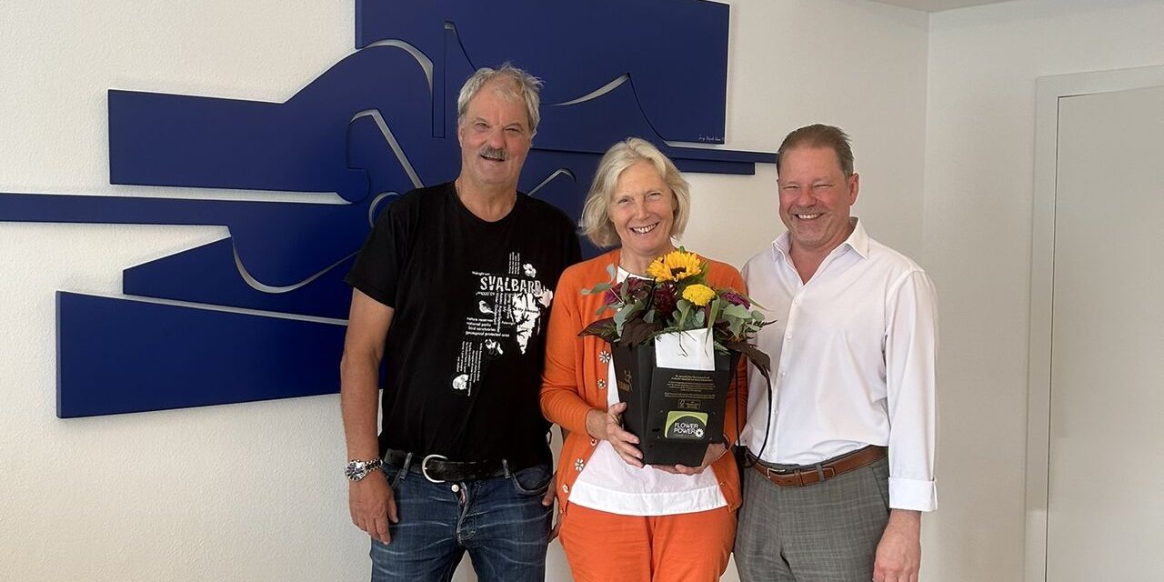 Anlässlich dieses besonderen Jubiläums überreichte Ralf Konopka, der 1. Vorsitzende des Gewerbeverbandes Rosenheim / BDS-Bayern, Manuela und Richard Diebald einen prächtigen Blumenstrauß. Mit dieser Geste würdigte er die langjährige Mitgliedschaft und den beeindruckenden Beitrag des Unternehmens zur lokalen Wirtschaft. Er sprach auch seine besten Wünsche für die zukünftige Entwicklung und den anhaltenden Erfolg von Diebald Lackierungen aus.